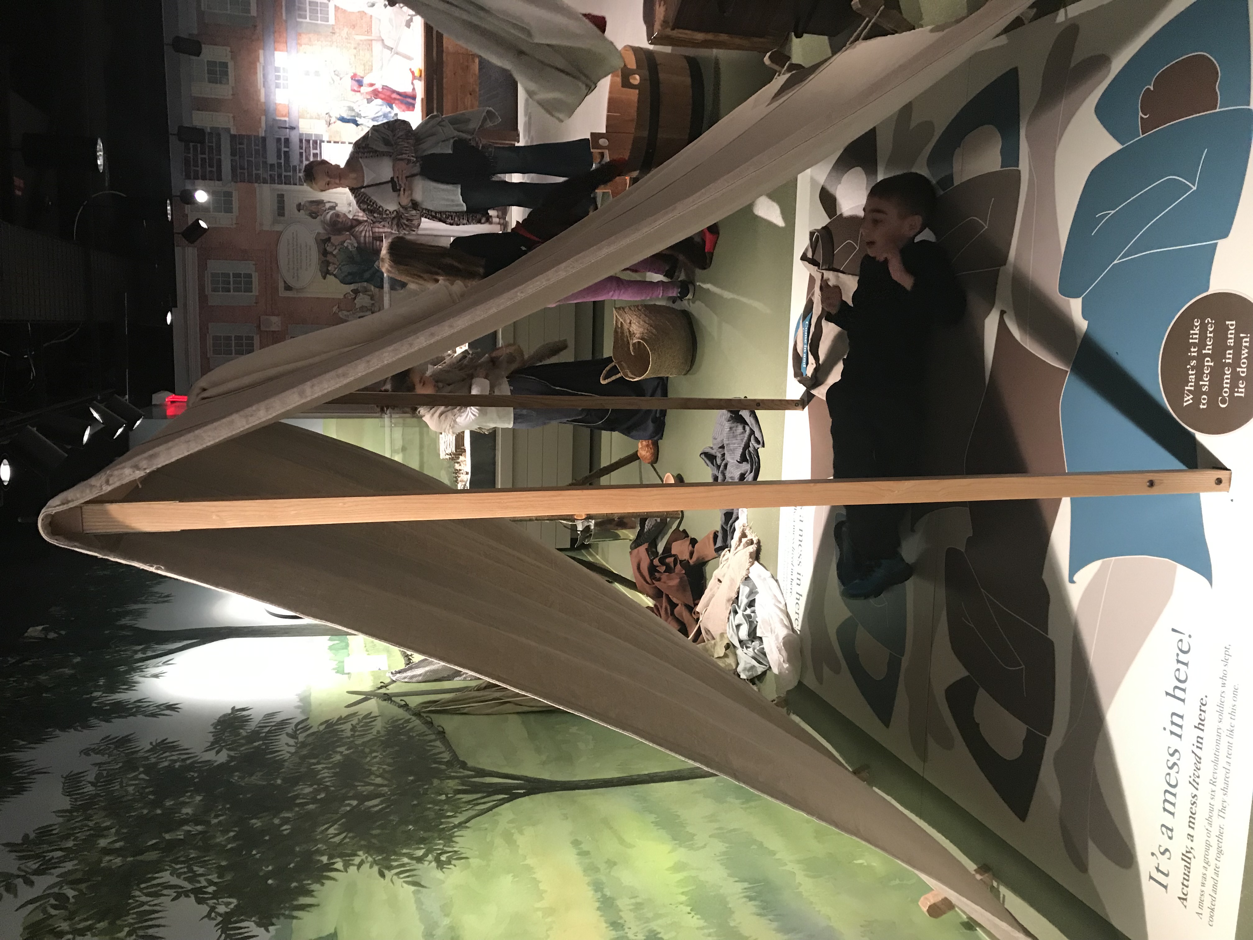 - The museum is appropriate for several age groups. The basement floor has a discovery center where kids can have a bit of experience with what they learn in the museum. They can try on revolutionary clothing, “sleep” in a military tent (mess), “cook” like a camp follower, see a toilet from the 1700s, enter a family’s tavern, and see what a Christian place of worship in Philadelphia looked like. One of my favorite activities was “Smells of the 18th Century.” The museum replicated smells and gave the history of each in context of the Revolution. I thought this was a great way to include one of our strongest senses in learning! The museum also did temporary tattoos and had many “please touch” exhibits to invite even its youngest visitors into the main areas of the museum. The fact that there was so much interaction with the exhibits sold it to me for our fourth grade learners.2. The Alexander Hamilton exhibit was informative. If you know me at all, you know I’m a Jefferson girl. That being said, I can appreciate a good exhibit when I see one, and the Alexander Hamilton exhibit at the Museum of the American Revolution was wonderfully done. Again, this was geared toward many different types of learners and to learners of several ages. There were several museum staff available to help visitors understand what they were reading and doing in the Hamilton exhibit. There was a replica cannon visitors could “load,” several articles of clothing to try on in many sizes so visitors could understand how one would dress when visiting the Washingtons, a smuggling board game, and a “create a coin” felt board station. Beyond the activities for the younger set, the exhibit itself was had a lot of detailed information. Furthermore, the museum asked for visitors to digest the information they consumed and on the way out determine (and write!) what Hamilton’s most important role was in American history. This exhibit was done really well from a pedagogical standpoint.